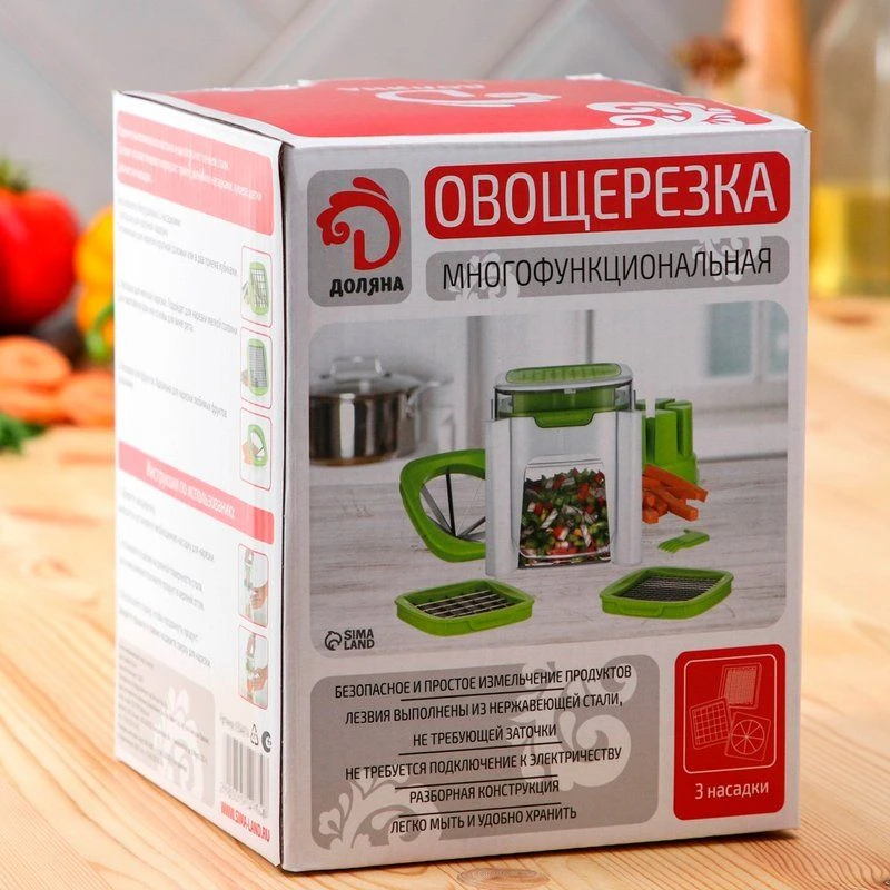 Эта многофункциональная овощерезка с тремя сменными насадками и удобным толкателем превратит подготовку овощей и фруктов в легкое и приятное занятие. Забудьте о долгом и утомительном шинковании – теперь это займет считанные минуты!