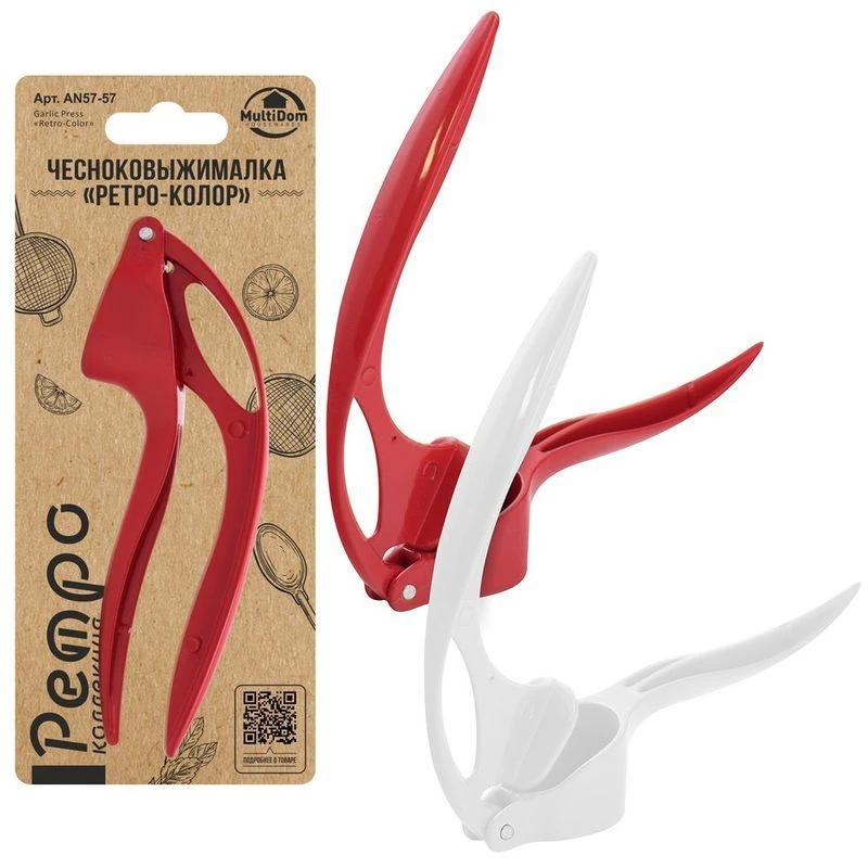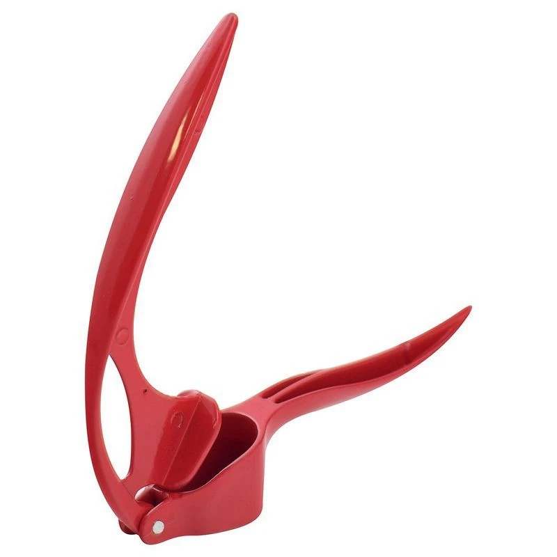 Чесноковыжималка — кухонное приспособление, предназначенное для измельчения чеснока во время приготовления блюд, салатов, закусок. В чашу кладутся зубчики чеснока, после чего придавливаются прессом. Кожица остается в чаше, а измельченная масса выходит наружу сквозь мелкие отверстия. Изделие изготовлено из алюминия, покрыто цветной эмалью. После использования тщательно очистите чеснокодавилку и промойте ее с применением жидких моющих средств.
