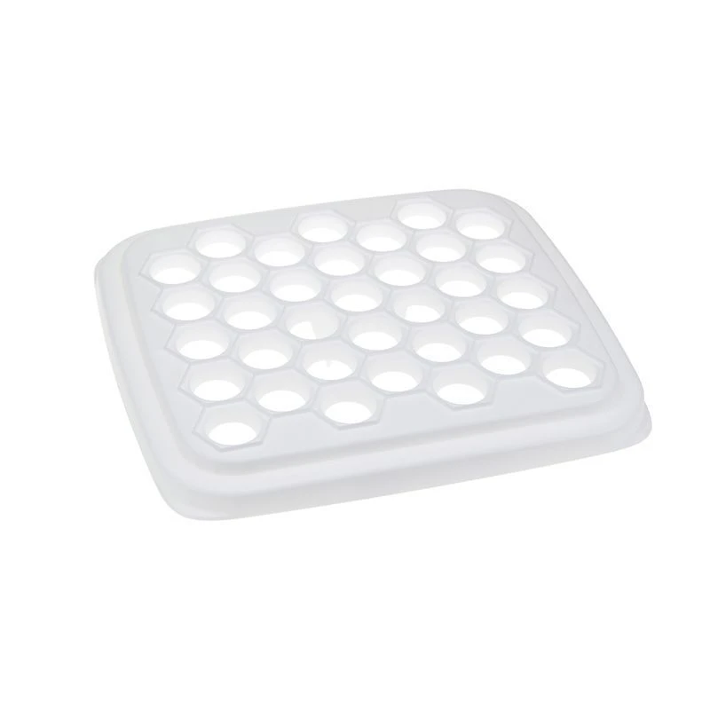 Пельменница позволяет за один раз сделать 35 пельменей. Твердый материал изделия легко разрежет тесто, если по нему прокатить скалкой. Прямоугольная форма легко ставится на бок и занимает мало место при хранении.