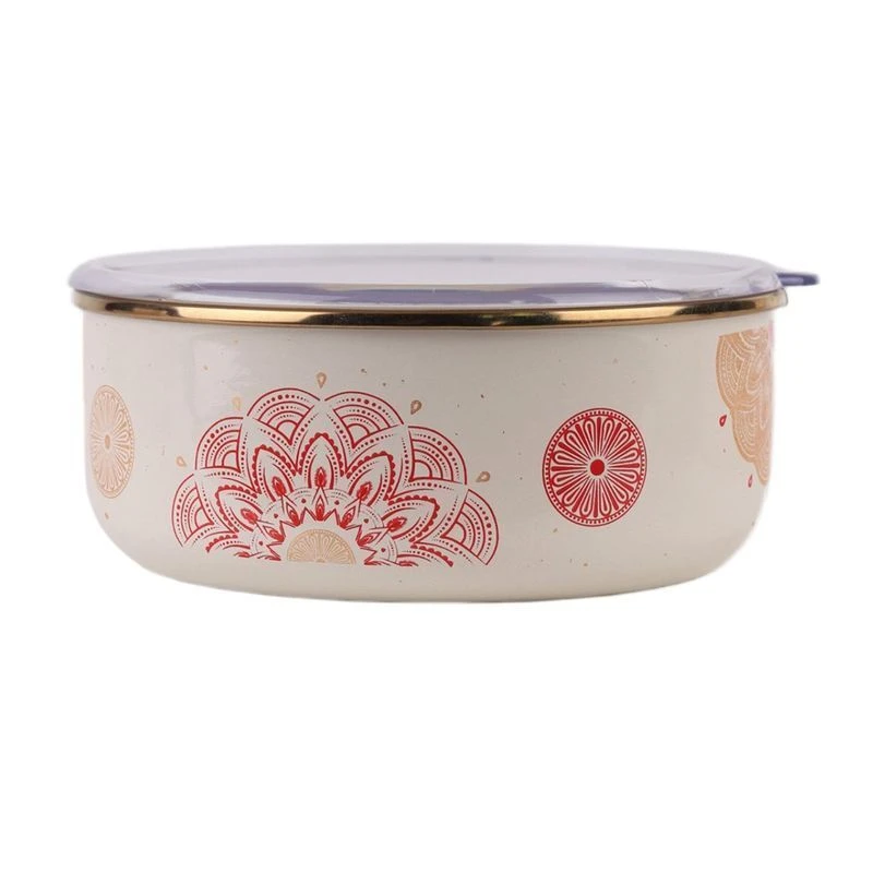 Эмалированная посуда серии «Сияние» сделана из высококачественной низкоуглеродистой стали, полученной способом холодного проката, покрыта 2-мя слоями жаропрочной эмали, однотонной - внутри, и с деколью – снаружи. Толщина стенок и дна миски- 0,6мм. Диаметр верха - 18см. Высота корпуса - 7см. Миска укомплектована акриловой крышкой с силиконовой прокладкой для уплотнения. Можно мыть в ПММ.