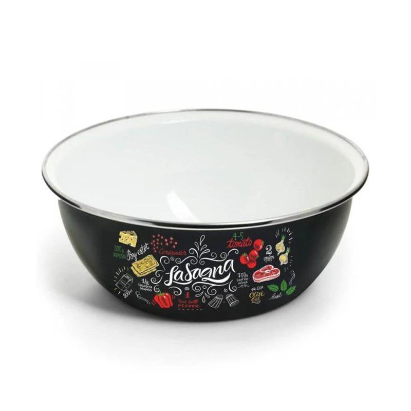 Миска изготовлена из высококачественной стали с эмалированным покрытием. Такое покрытие устойчиво к перепадам температуры и механическим воздействиям, а также к воздействиям окружающей среды. На внешней стороне имеется яркий принт. Используется для сервировки и приготовления салатов и других блюд. Такая миска пригодится на любой кухне и поможет вам в приготовлении пищи. Можно мыть в посудомоечной машине. Толщина стенок 1,7мм