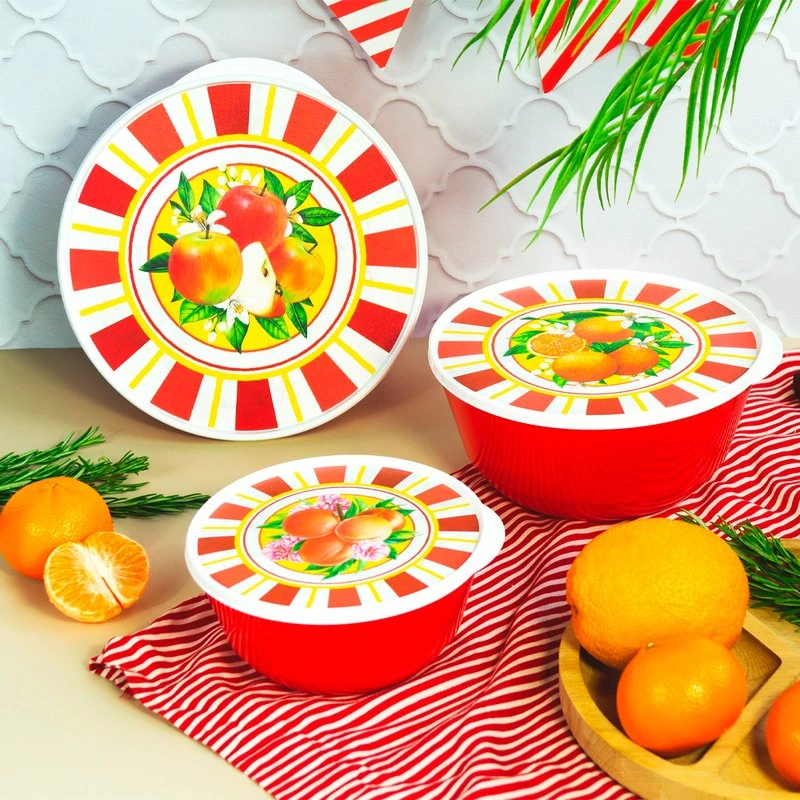 Миска с крышкой Bergamo объёмом 1л предназначена для приготовления и сервировки блюд, а благодаря плотно закрывающейся крышке ее использовать для хранения. Миска оснащена гибкой плотно садящейся крышкой с удобной ручкой. Миски изготовлены из безопасного перерабатываемого пищевого полипропилена. IML-декор на крышке вплавляется в изделие на этапе литья, поэтому он не стирается и долго радует глаз. Миски удобно вкладываются друг в друга и формируют комплект с оптимальными объёмами ёмкостей.