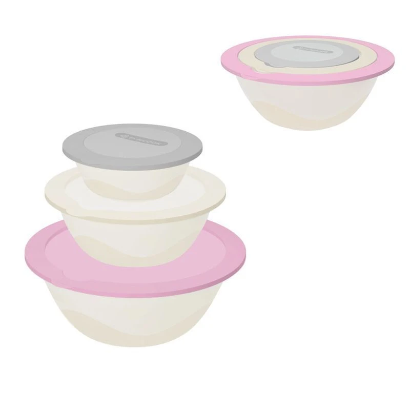Крышка плотно фиксируется на корпусе. Еду и заготовки в салатниках можно брать с собой на пикник, в гости и на дачу. За счет плоской крышки салатники удобно ставить друг на друга при хранении и переноске. За широкий верхний бортик салатник удобно держать при взбивании и перемешивании. На крышке предусмотрен язычок для легкого открывания.