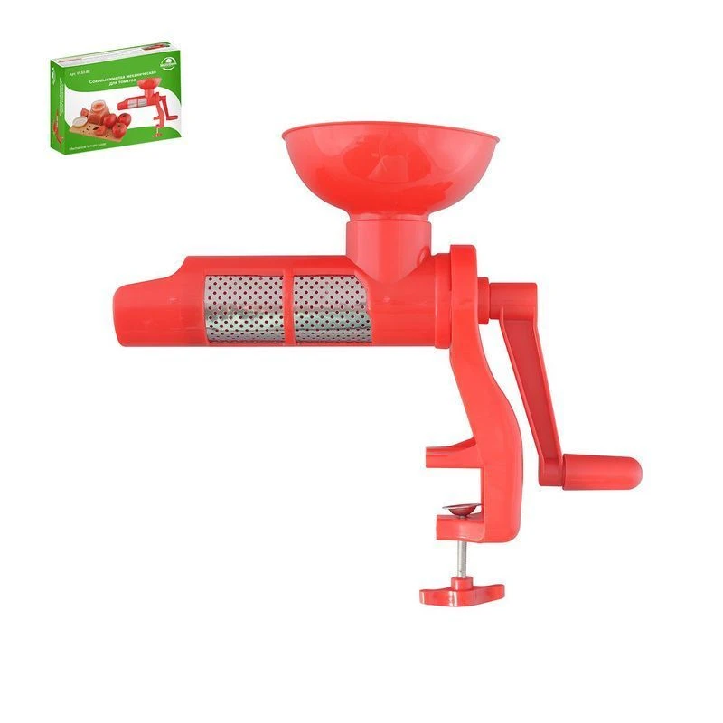 Ценители такого вкусного и полезного овоща как томат по достоинству оценят это приспособление. Соковыжималка предназначена для получения сока и мякоти томатов. С ее помощью вы сможете порадовать своих родных и близких свежевыжатым томатным соком, из мякоти томатов приготовите вкусные соусы, блюда, разнообразите рецепты консервирования. Изготовлено: коррозионностойкая (нержавеющая) сталь, пластмасса (полипропилен).