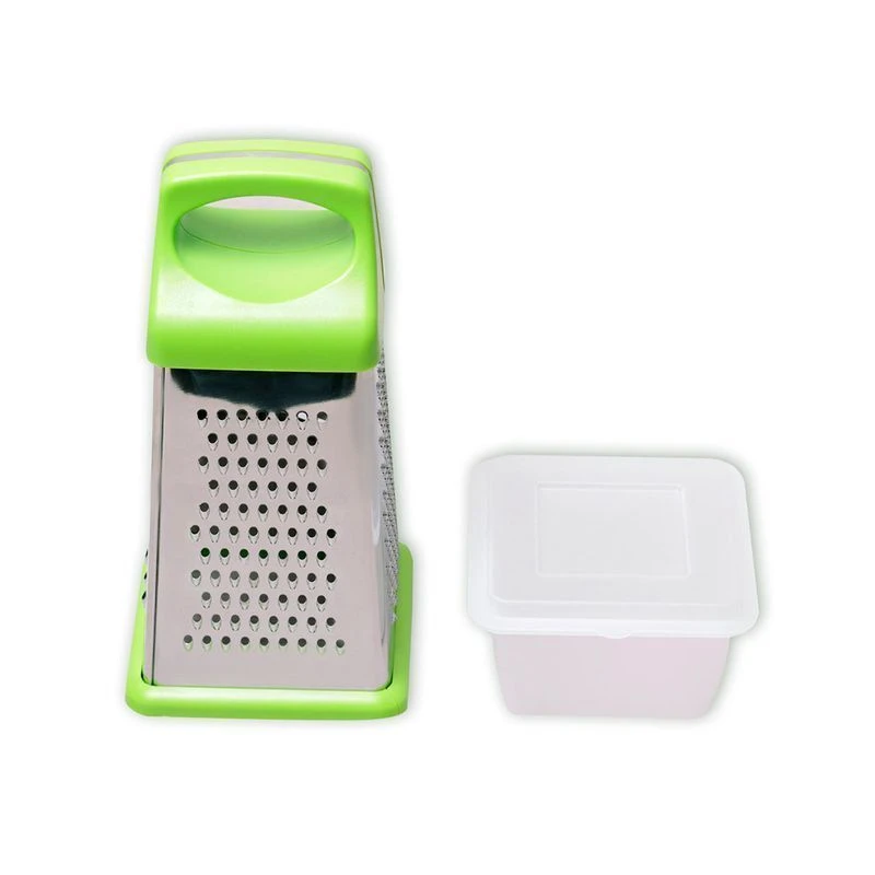 Материал: нержавеющая сталь. Количество трущих-режущих поверхностей: 4. Материал ручки: пластик. Основное назначение: многофункциональная. Наличие контейнера (поддона). Размеры контейнера: 10,5х10,5х6,5 см. Нескользящее основание. Подходит для мытья в посудомоечной машине.
