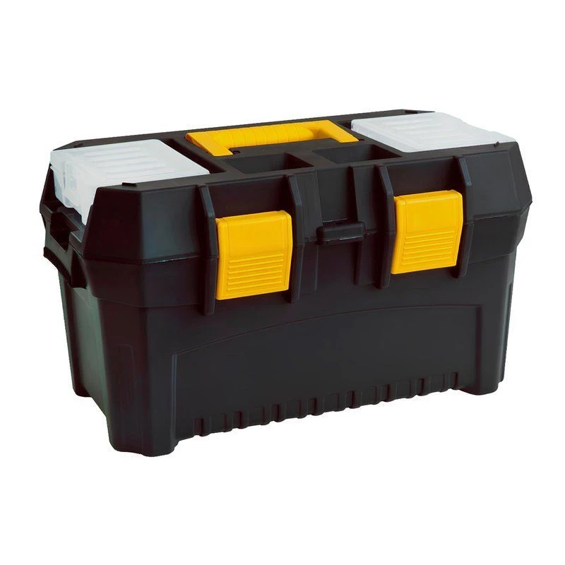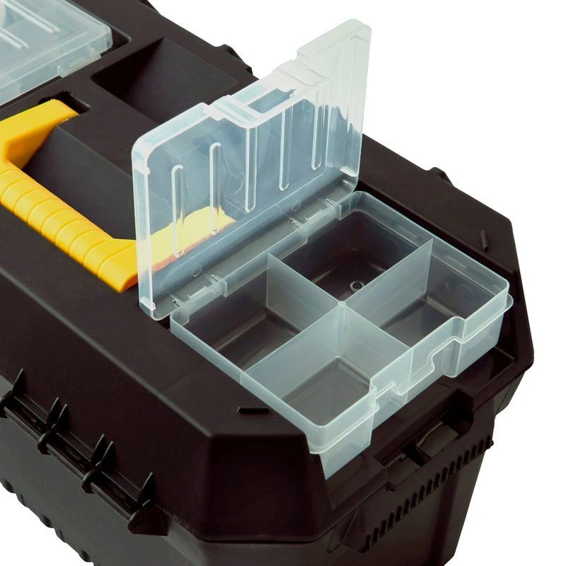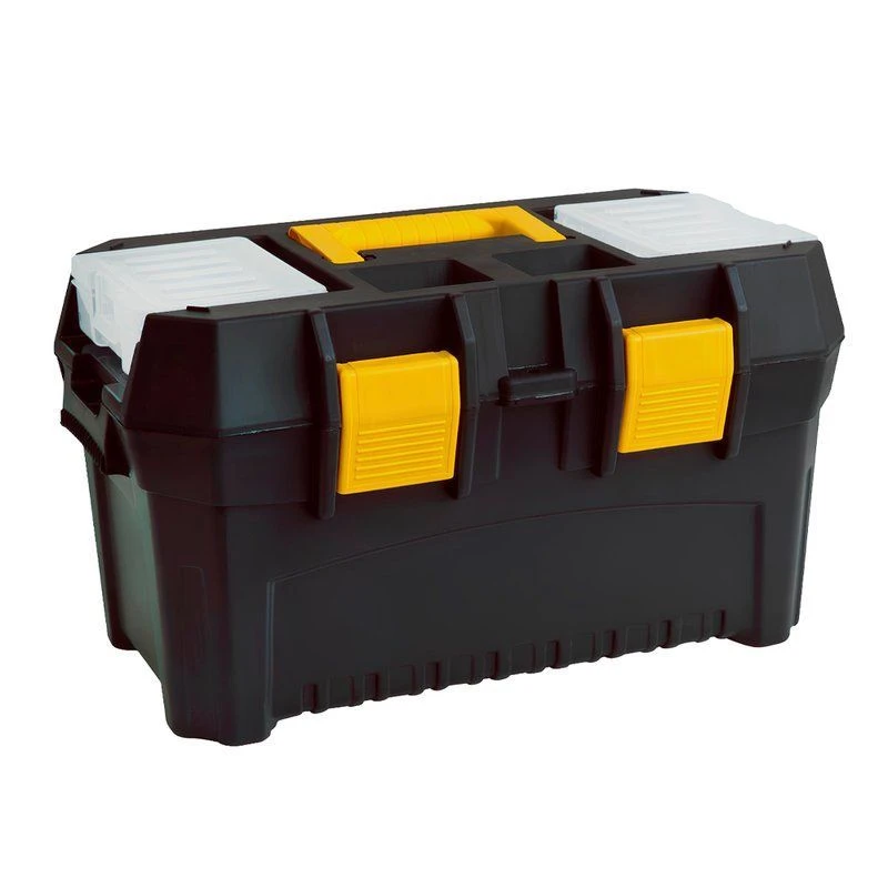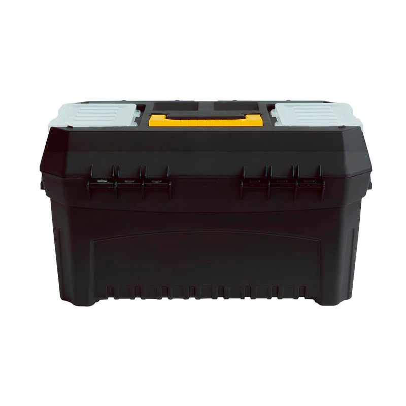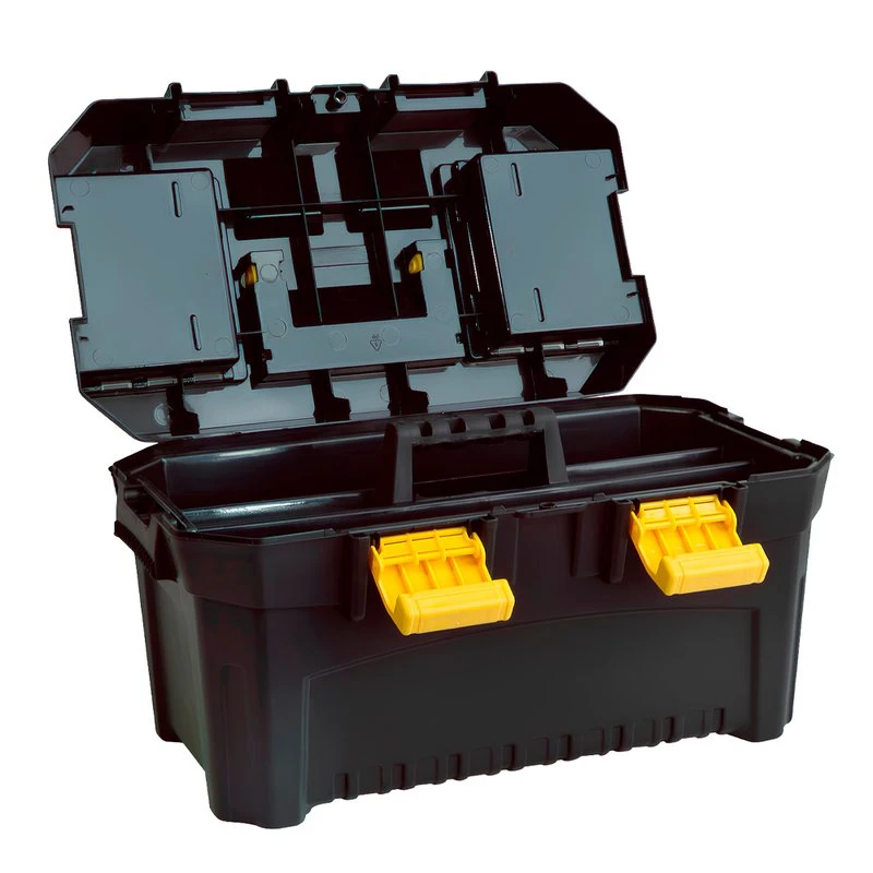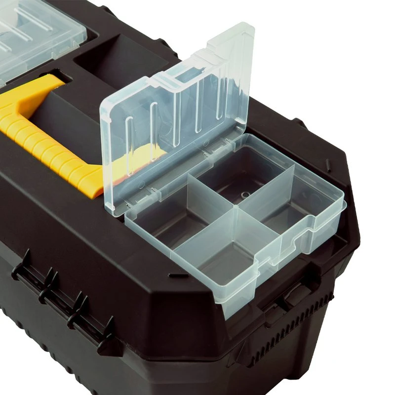 Ящик для инструментов помогает содержать в порядке и быстро находить необходимые инструменты и принадлежности к ним. Идеален для использования дома, на даче, в гараже, мастерской, в автомобиле. Хранение инструментов в ящике защищает их от пыли и грязи. Надежная ручка выдержит даже полный ящик. Съёмный внутренний лоток позволяет отделить инструменты и аксессуары первой необходимости от основного отсека. Корпус ящика оснащён отверстиями для крепления наплечного ремня. На крышке ящика расположены два органайзера для наиболее частых расходников. Навесной замок можно надеть в проушину на передней части ящика, защищая содержимое от свободного доступа детей.