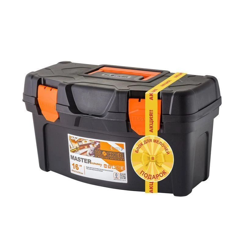 Набор ящик для инструментов Master Economy 16" + органайзер Master 5,5". Ящик и органайзер для мелочей помогают содержать в порядке и быстро находить необходимые инструменты и принадлежности к ним. Идеальны для использования дома, на даче, в гараже, мастерской, в автомобиле. Хранение инструментов в ящике защищает от пыли и грязи. Наличие ручки позволяет переносить инструменты на место выполнения работ. Съёмный внутренний лоток позволяет отделить инструменты первой необходимости и мелкогабаритные аксессуары от основного отсека. С помощью нанесённой на лоток размерной линейки можно быстро произвести измерения. Возможность использования навесного замка защитит содержимое от свободного доступа, в том числе обеспечит безопасность детей.Размеры органайзера 14*13,5*4,2см