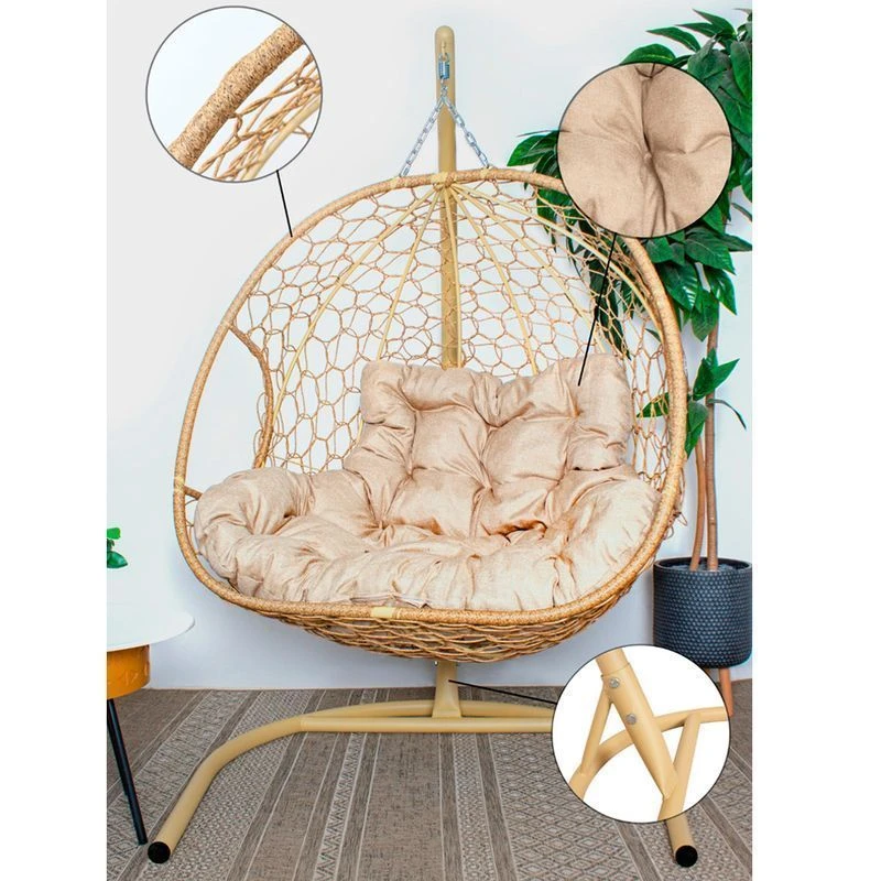 Кокон выдерживает нагрузку до 160 кг, этого достаточно для комфортного размещения двоих человека. Искусственный ротанг - это уникальный материал, он лёгкий, но при этом прочный и надёжный, и подлежит повторной переработке. Подушка, входящая в комплект выполнена из плотной гипоаллергенной и влагостойкой ткани. Изделие не требует специального ухода или особых условий хранения. Кресло поставляется в разобранном виде, собирается легко согласно инструкции.