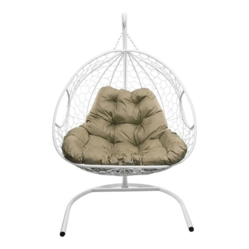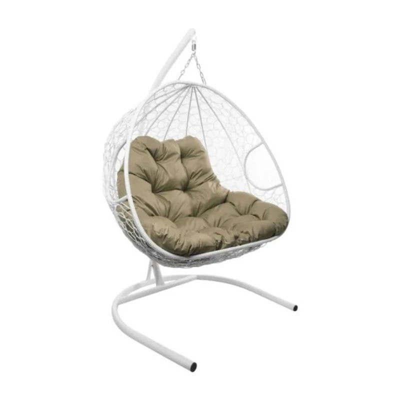Подвесное кресло кокон двухместное M-GROUP ДЛЯ ДВОИХ с ротангом белое+бежевая подушка