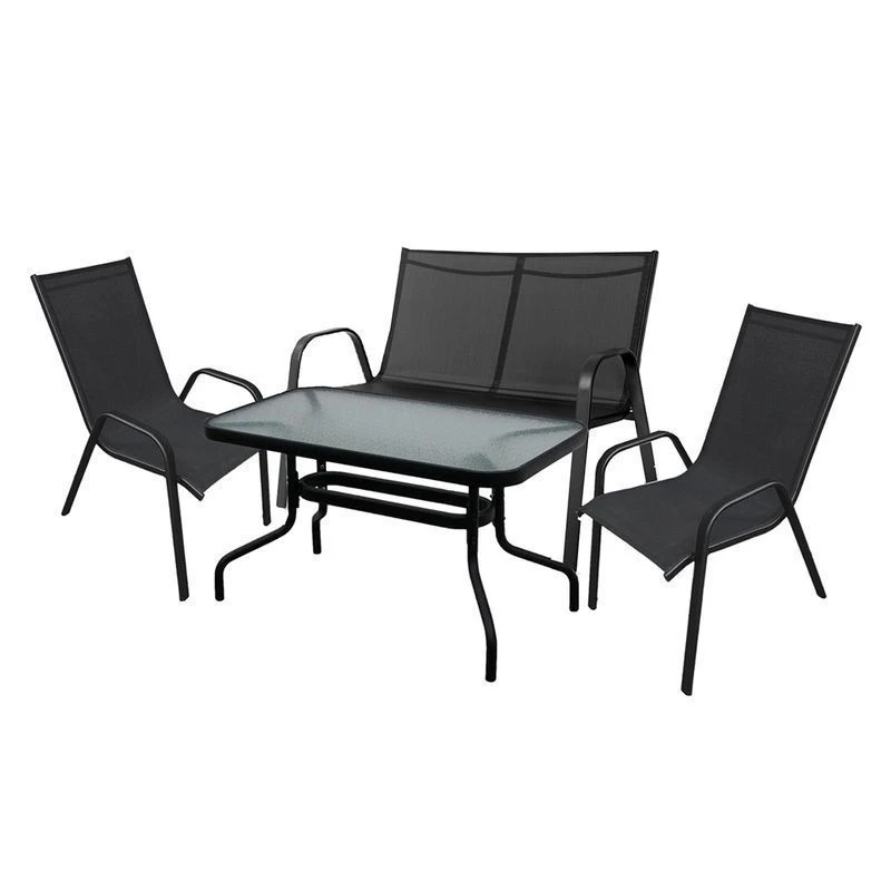 Габариты элементов (ШхГ-ДхВ) : стол:900х500х500кресло: 560х750х970диван: 1150х750х960Цвет каркаса : черныйМатериал каркаса : стальУзор ткани : без рисункаЦвет поверхности : черныйМатериал поверхности : текстилен, стеклоКомплектация : стол, 2 кресла, диван Страна производства : РОССИЯ