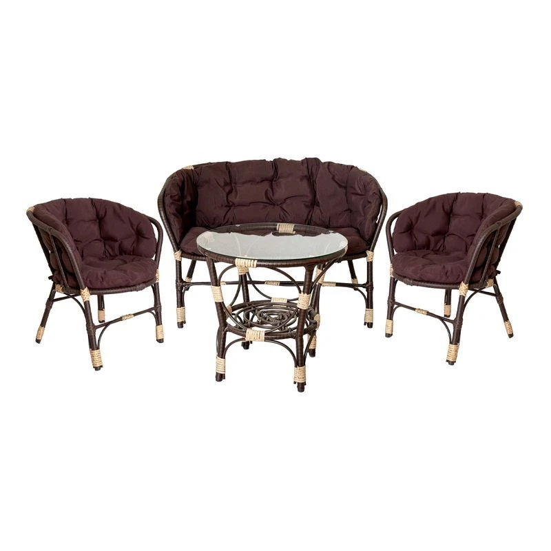 Размеры: 60*60*56 см (стол); 66*66*74 см (кресло); 66*112*74 см (диван)