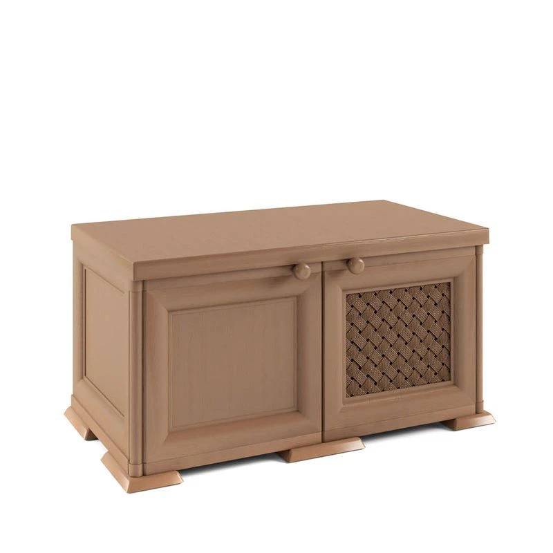 Невысокое, элегантное изделие оправданно смотрится в коридоре, прихожей обычной квартиры, загородного дома, коттеджа, дачного домика. Шкаф пластиковый Уют изготовлен с необходимым условием, чтобы внутри помещалось большое количество всевозможной обуви, полезных аксессуаров — лопаток, обувного крема, щеточек.