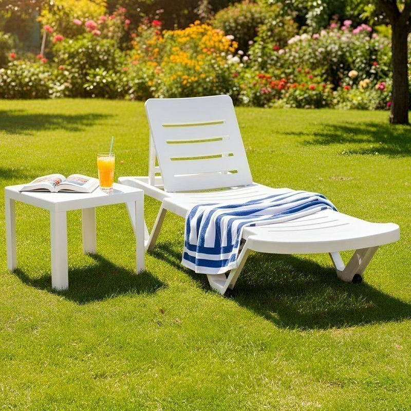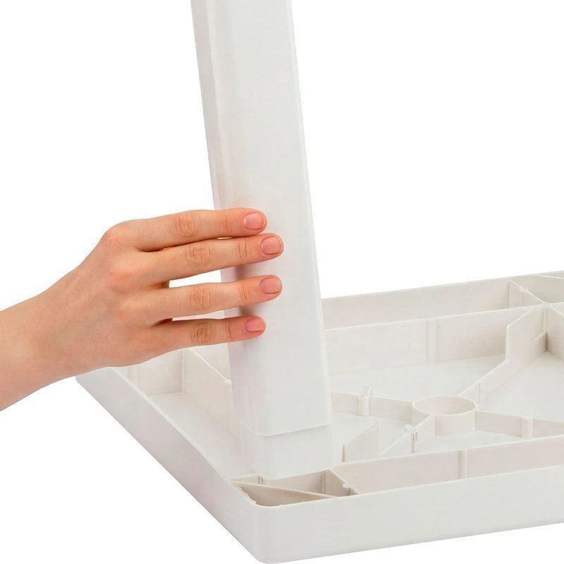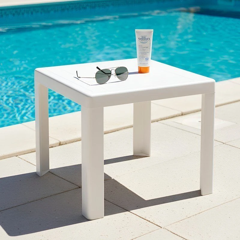 Стол для шезлонга Decorona DeVeranda - надежный спутник во время пикников, вечеринок на свежем воздухе или просто для расслабляющего времяпрепровождения на террасе. Он отлично дополняет шезлонг Decorona. Благодаря квадратной форме и лаконичному дизайну, стол легко вписывается в любой ландшафт и интерьер. Треугольные ножки легко вставляются в столешницу и обеспечивают устойчивость на неровном полу. Благодаря заглушкам на них, земля и песок не застревают. Стол для шезлонга способен выдержать: нагрузку до 30 кг, УФ-излучение, соленую и хлорированную воду.