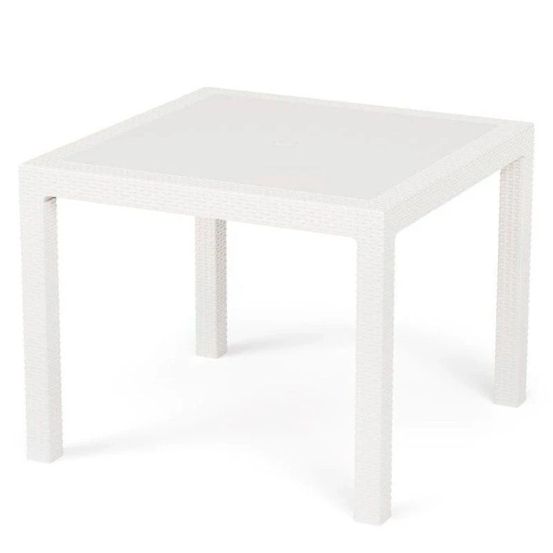 Пластиковый стол с имитацией плетения ротанг. Стол рассчитан на 4 персоны, продается в разборном виде, быстро и легко собирается. Выполнен из качественных полимеров, устойчив к солнечным лучам, влаге и перепадам температур. Идеально подойдёт для зоны отдыха вашего загородного дома или дачи.