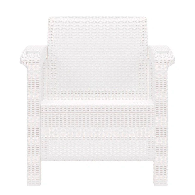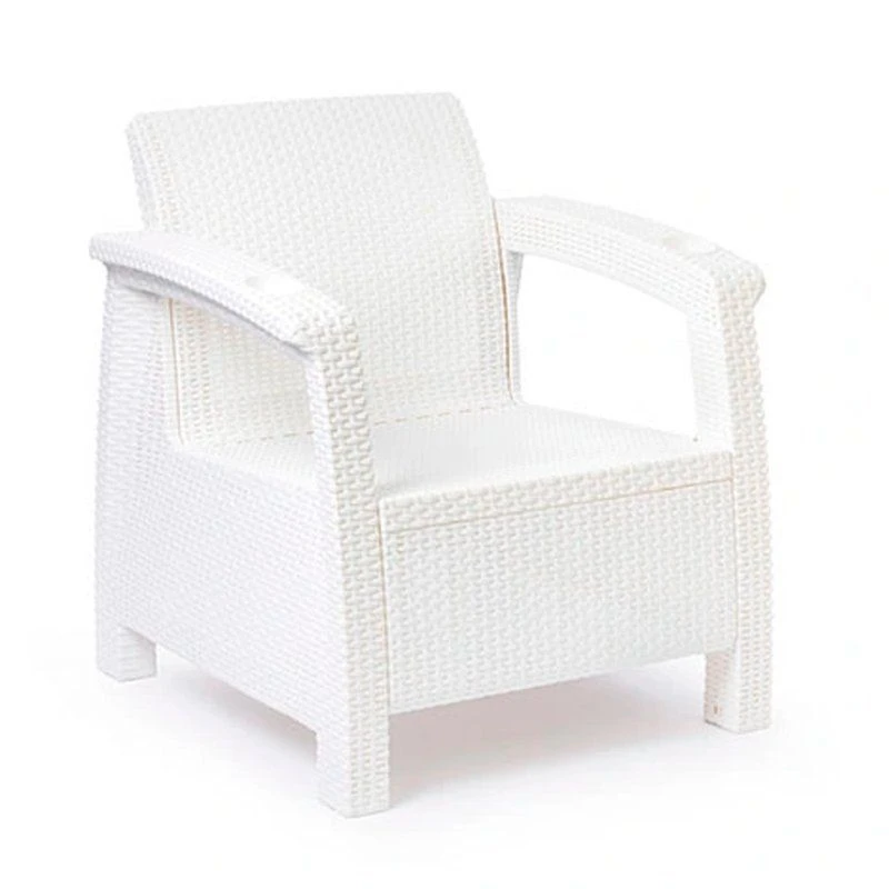 Кресло произведено из высококачественного полипропилена, имитирующего плетение из ротанга. Кресло имеет одно посадочное место, допустимая нагрузка на одно посадочное место - 106 кг . На подлокотниках дивана расположены отверстия для напитков.Кресло может стать идеальным решением по оформлению зоны отдыха в доме, на садовом участке, в офисном помещении или в кафе. Благодаря цветовым решениям, кресло подойдет под любой интерьер. Кресло упаковывается в индивидуальную упаковку, инструкция по сборке прилагается.