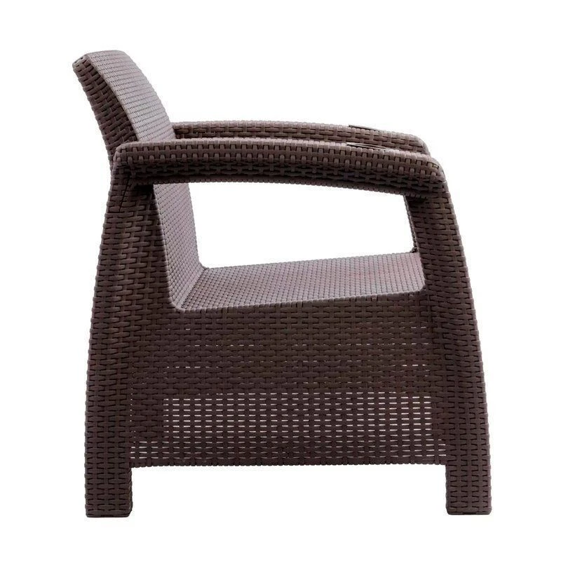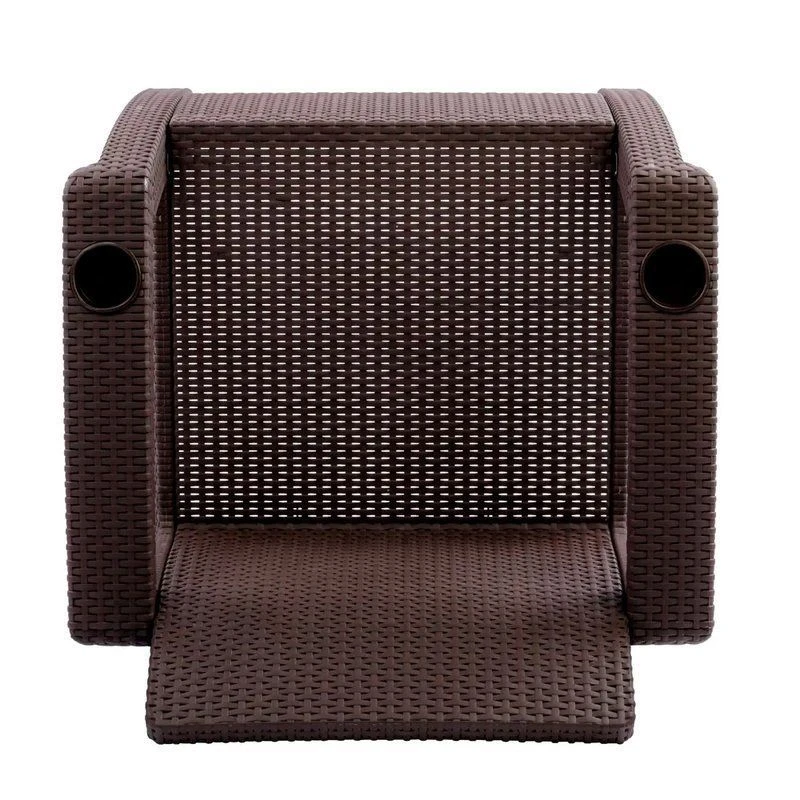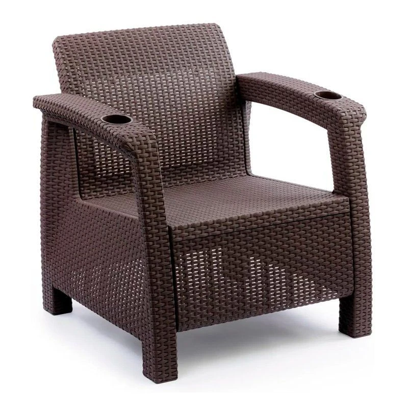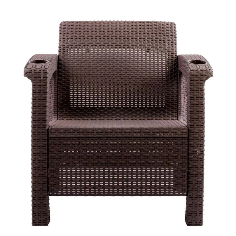 Кресло произведено из высококачественного полипропилена, имитирующего плетение из ротанга. Кресло имеет одно посадочное место, допустимая нагрузка на одно посадочное место - 106 кг . На подлокотниках дивана расположены отверстия для напитков.Кресло может стать идеальным решением по оформлению зоны отдыха в доме, на садовом участке, в офисном помещении или в кафе. Благодаря цветовым решениям, кресло подойдет под любой интерьер. Кресло упаковывается в индивидуальную упаковку, инструкция по сборке прилагается.