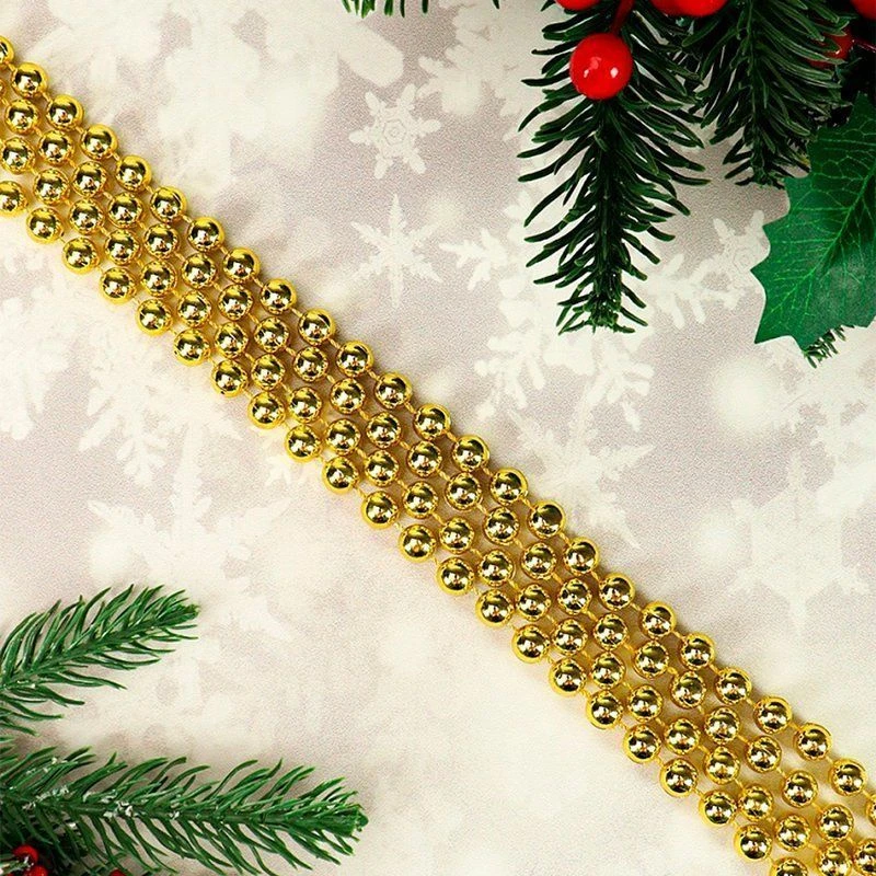 Бусы на елку — незаменимый декор, который помогает создавать невероятно уютную атмосферу Нового Года! Они эффектно выделяются на фоне хвои, придавая оформлению праздничный вид. Кроме того, бусами можно украсить предметы интерьера. Данный аксессуар является завершающим штрихом композиции, придает ей особого шарма и романтизма. Цвет: золотой. Длина: 1,8 м. Диаметр: 1 см.