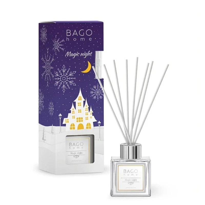 Ароматы из новогодней коллекции BAGO home мгновенно наполнят ваш дом атмосферой праздника и подарят ощущение чуда! Линейка представлена тремя ароматами в диффузорах с фибровыми палочками из прессованного хлопкового волокна, которое не имеет запаха и передаёт аромат в чистом виде.