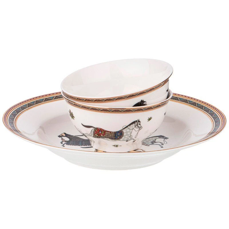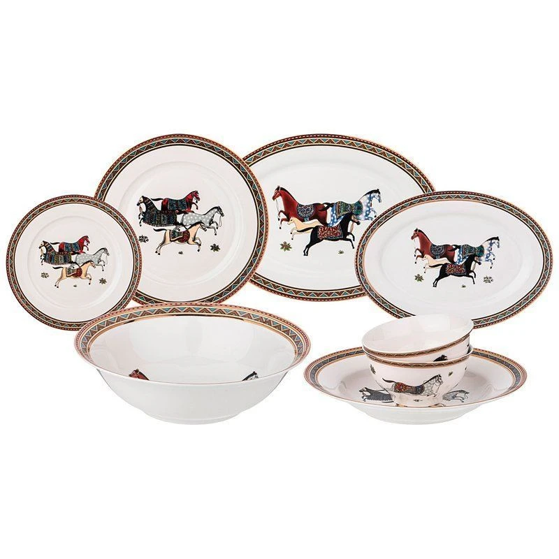 Комплектность: тарелка закусочная 20,5 см – 6 шт., тарелка обеденная 27 см – 6 шт., тарелка суповая 23 см – 6 шт, салатник 23 см – 1 шт, салатник 11 см – 2 шт., блюдо овальное 25,5 см – 1 шт., блюдо овальное 35,5 см – 1 шт.