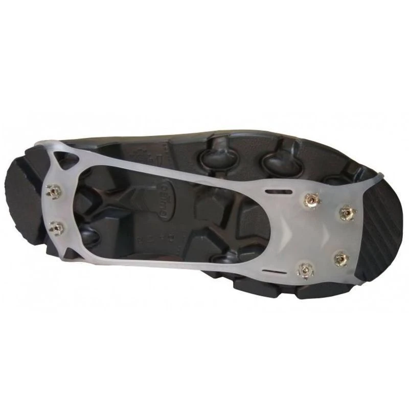 Антигололед имеет овальную форму, надевается на пятку и на носок.