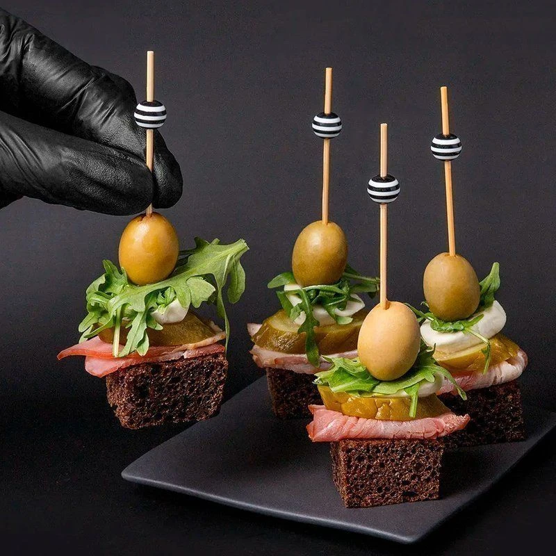 Пика бамбуковая для канапе – незаменимый элемент в создании интересных закусок на праздничный или повседневный стол. Бамбуковые пики могут использоваться для приготовления различных закусок: небольших бургеров, сэндвичей, канапе. Они подходят для украшения коктейлей или десертов. Нередко пику используют в создании композиций из фруктов или овощей. С их помощью можно легко оформить тарелки с сырной, мясной нарезкой. Блюдо, украшенное бамбуковыми шпажками, будет выглядеть еще аппетитнее и ярче.