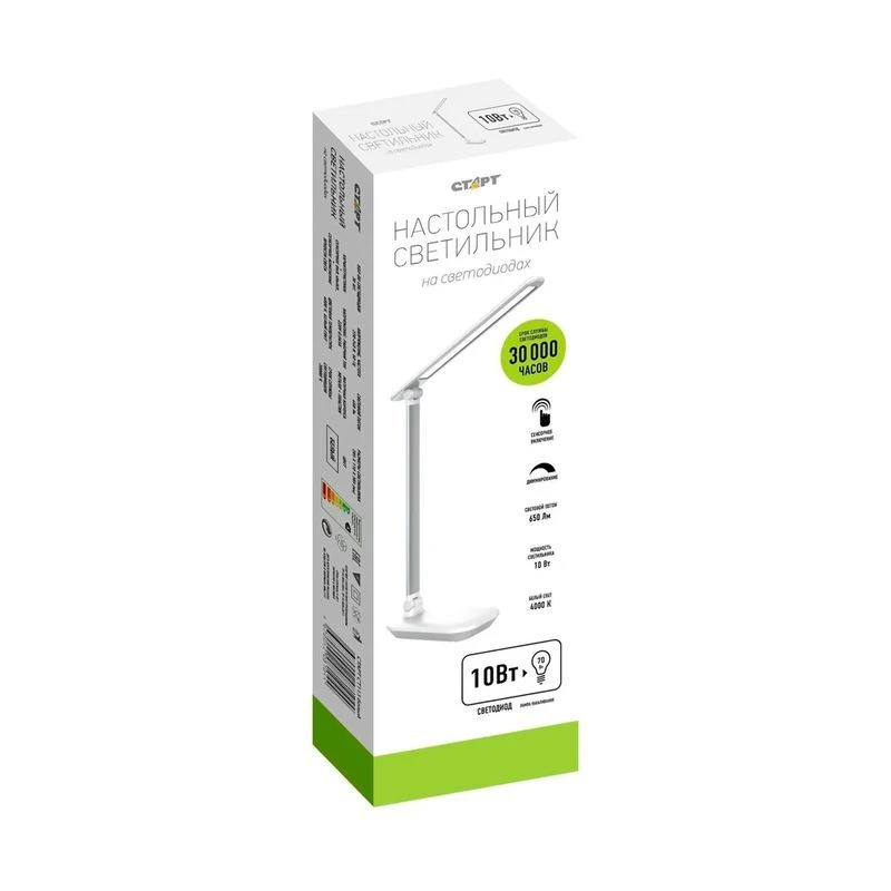 Светильник универсальный СТАРТ СТ113 предназначен для создания дополнительного источника света в помещении. Он может использоваться дома или в офисе, для освещения рабочего пространства. Имеет классический вид настольной лампы: вытянутый плафон, вертикальная стойка и плоское основание. Выполнен в пластиковом корпусе белого цвета с металлическими деталями. Плафон светильника подвижный, наклоняется под нужным углом для изменения направления света.