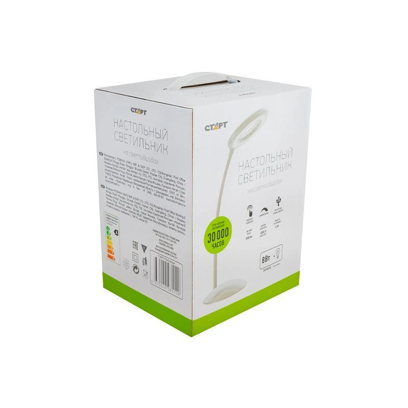 Светильник СТАРТ СТ202 белый имеет 3 уровня яркости, которые переключаются с помощью диммера. Сенсорный переключатель находится на подставке светильника. Гибкая «ножка» позволяет поворачивать плафон в любом направлении, выбирая нужный угол света. Рекомендуется устанавливать светильник слева от рабочей зоны.