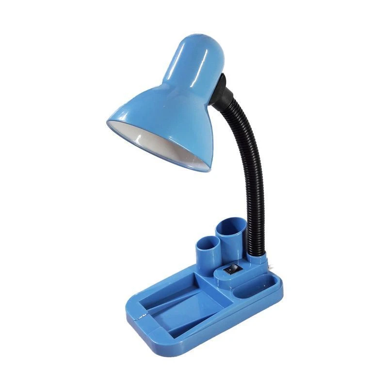 Настольный светильник под лампу с цоколем Е27 с плафоном классической формы на подставке-пенале. Устойчивая подставка содержит несколько ячеек для канцтоваров или различных мелочей. Оснащен полностью пружинным стволом, который позволяет регулировать угол наклона плафона в любом направлении. Высококачественный керамический патрон обеспечивает надежный контакт и легкость вкручивания лампы. Регулировка угла освещения осуществляется за счет гофрированного ствола. Поставляется в разных цветах. Предназначен для направленного стабильного освещения рабочей поверхности.