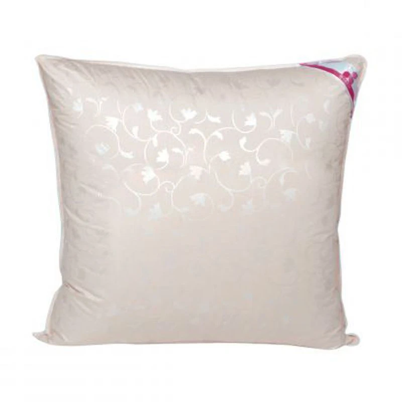 Чехол подушки выполнен из тика, 100% хлопок. Наполнена она уникальной смесью - натуральным пухом второй категории (80%) и синтетическим полиэфирным волокном (20%). Чехол двусторонний - с одной стороны однотонный цвета шампань, а с другой декорирован рисунком.