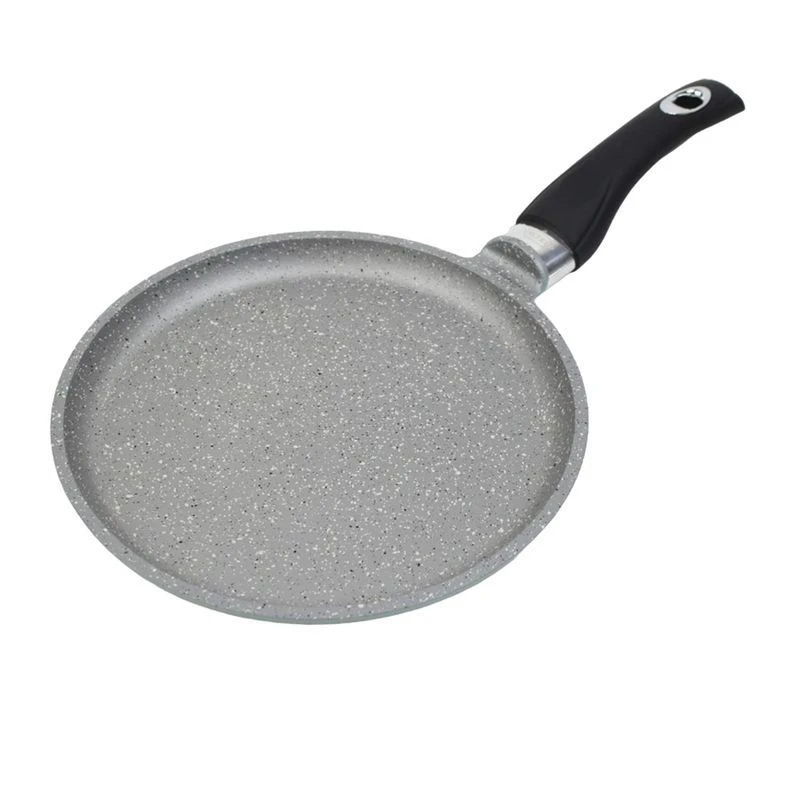 Сковорода блинная имеет невысокие бортики и удобную ручку, благодаря чему легко переворачивать и снимать блины. Утолщенное дно обеспечивает особые термоаккумулирующие свойства: блин равномерно пропекается по всей толщине и красиво румянится с обеих сторон. Благодаря антипригарному покрытию блины всегда легко снимаются со сковороды и не пригорают, даже при выпекании без использования масла.