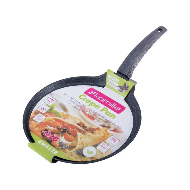 Благодаря прочному мраморному покрытию, такая сковорода устойчива к механическим воздействиям, за счет чего значительно увеличивается срок ее службы. Сковорода нагревается равномерно, не создавая перегретых участков и холодных краев, даже в тех случаях, когда процесс приготовления еды идет на небольшом огне. В результате сокращается время приготовления блюда и уменьшается риск есть смесь недожаренной или пережаренной пищи. Уже после первого использования сковороды с мраморным покрытием Kamille Вы будете удивляться, как могли обходится без нее ранее.