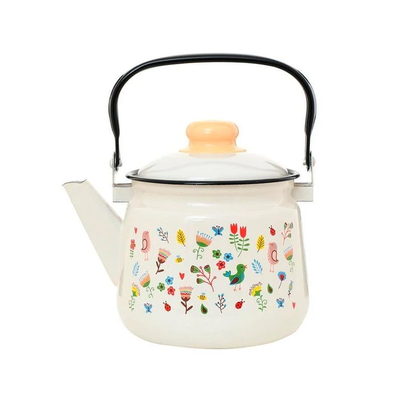 Чайник изготовлен из высококачественного стального проката и покрыт стеклокерамической эмалью. Внутри и снаружи - трехслойное глянцевое эмалированное покрытие. Эмалевое покрытие, являясь стекольной массой, не вызывает аллергию и надежно защищает пищу от контакта с металлом. Кроме того, такое покрытие долговечно, оно устойчиво к механическому воздействию, не царапается, а стальная основа практически не подвержена механической деформации, благодаря чему срок эксплуатации увеличивается. Крышка с эмалированным покрытием оснащена удобной ручкой. Подходит для всех типов плит, включая индукционные. Можно мыть в посудомоечной машине.