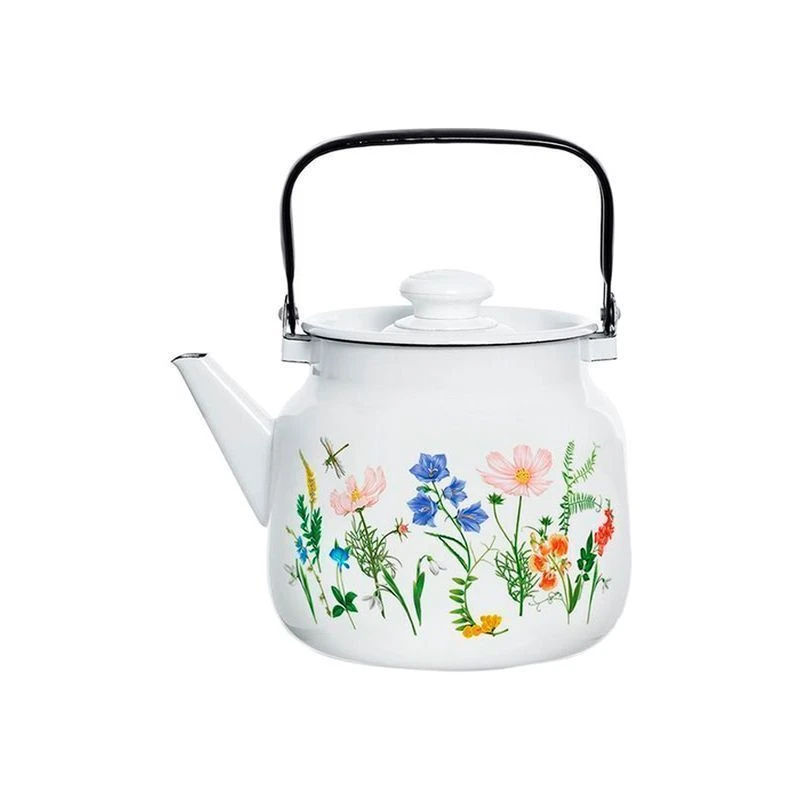 Чайник изготовлен из высококачественного стального проката и покрыт стеклокерамической эмалью. Внутри и снаружи - трехслойное глянцевое эмалированное покрытие. Эмалевое покрытие, являясь стекольной массой, не вызывает аллергию и надежно защищает пищу от контакта с металлом. Кроме того, такое покрытие долговечно, оно устойчиво к механическому воздействию, не царапается, а стальная основа практически не подвержена механической деформации, благодаря чему срок эксплуатации увеличивается. Крышка с эмалированным покрытием оснащена удобной ручкой. Подходит для всех типов плит, включая индукционные. Можно мыть в посудомоечной машине.