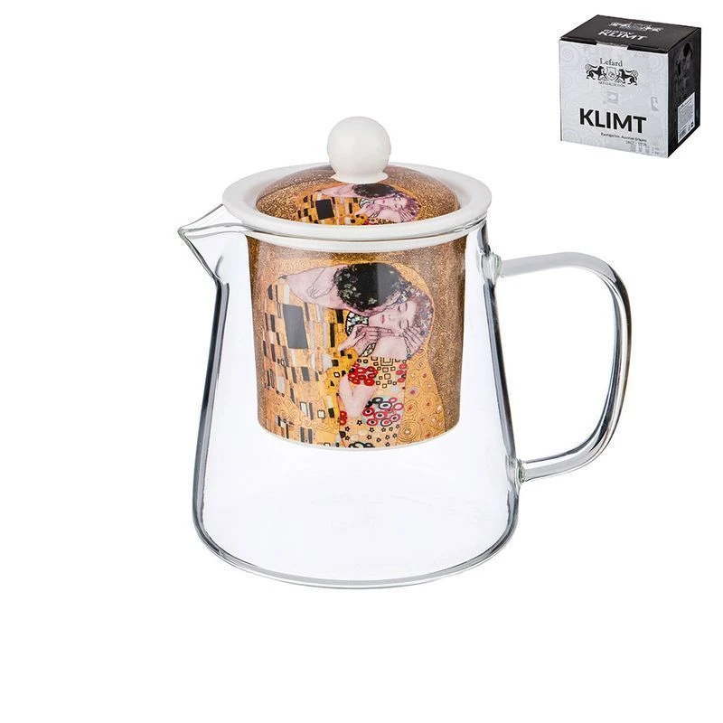 Изделия из жаропрочного стекла с фарфоровым ситом.Декор по мотивам картин Густава Климта. Удобная форма. Отличный подарок.Не рекомендуется мыть в посудомоечной машине.