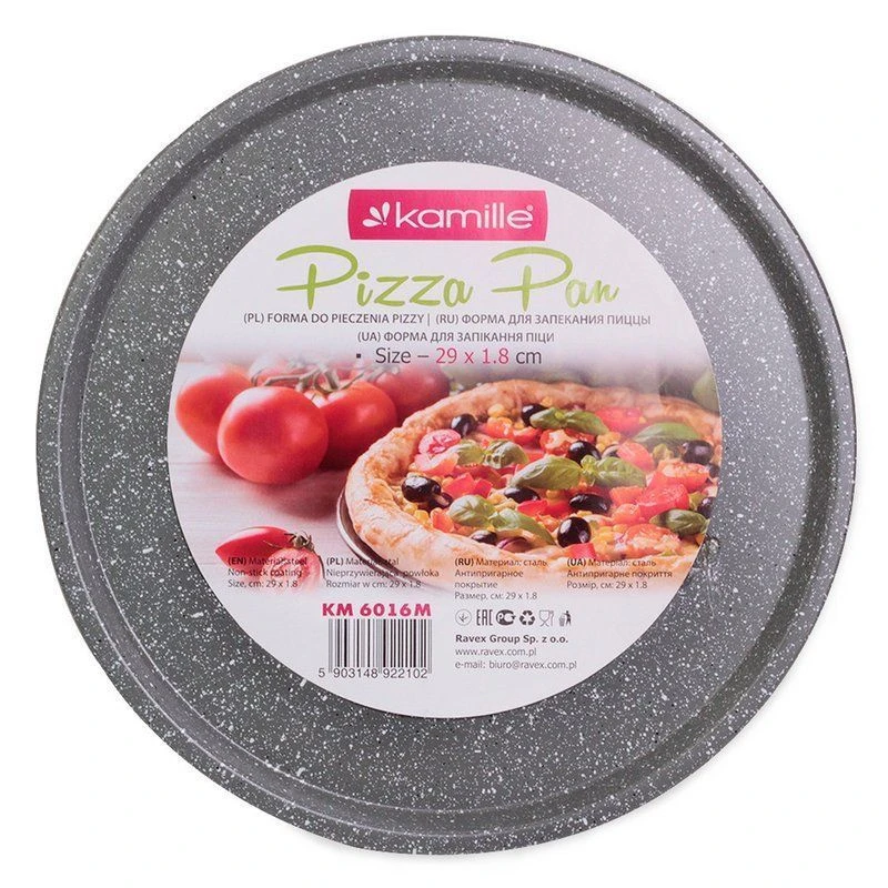 Форма для запекания пиццы Kamille - очень удобная и практичная, прекрасно подходит для использования в домашних условиях, а так же просто незаменима на профессиональной кухне. Форма выполнена из углеродистой стали с антипригарным покрытием и отличается своей прочностью и износостойкостью. В такой форме очень легко и просто готовить пиццу и разнообразные открытые пироги. Имея у себя на кухне такую форму, Вы всегда сможете порадовать своих родных и близких вкусной и полезной едой!
