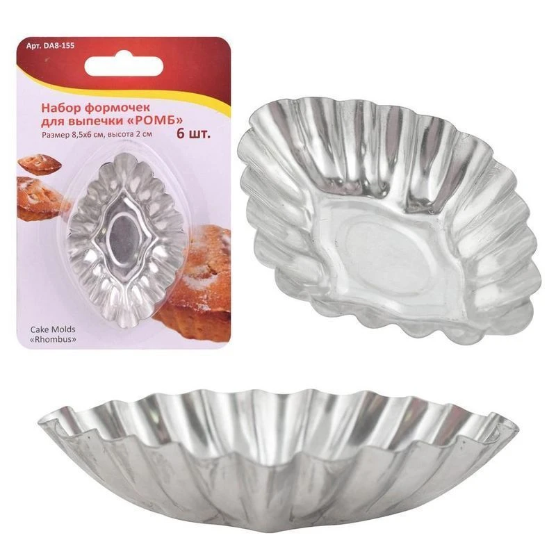 Металлические формы для выпечки идеально подходят для приготовления корзиночек, тарталеток, маффинов, жульенов. В наборе 6 форм размером 8,5х6 см, высотой 2 см. Перед выпеканием смажьте форму маслом, чтобы выпечка не прилипла к стенкам. В зависимости от консистенции залейте или распределите тесто по формочке и выпекайте при рекомендуемой рецептом температуре. После использования, промойте формочки под проточной водой с использованием жидких моющих средств. Изготовлено из луженой стали.