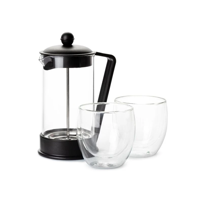 Набор для горячих напитков УЮТНЫЙ вечер (френч-пресс 600мл + термобокал 250мл 2шт). Френч-пресс изготовлен из термостойкого стекла. Поршень из нержавеющей стали не вступает в реакцию с заваркой, не портит ее природный аромат и вкусовые качества. Стеклянная колба хорошо держит тепло, позволяя чайным листьям полностью раскрыться. Эргономичная пластиковая ручка не нагревается. Термобокалы с двойными стенками - практичное изобретение, известное благодаря способности поддерживать температуру содержимого. Стекло устойчиво к перепаду температур до 200 градусов С. Благодаря двойным стенкам с воздушной прослойкой между ними горячие кофе, чай, глинтвейн дольше остаются горячими, а прохладные коктейли и мороженое не нагреваются, также позволяют не обжечься, держа в руке кружку с горячим напитком. Материал термобокала - боросиликатное стекло. Кроме несомненных практических преимуществ, двойные стенки создают особый визуальный эффект.Набор упакован в красочную коробку и станет прекрасным подарком на Новый год, ДеньРождения, 8 марта, 23 февраля и любой другой праздник!