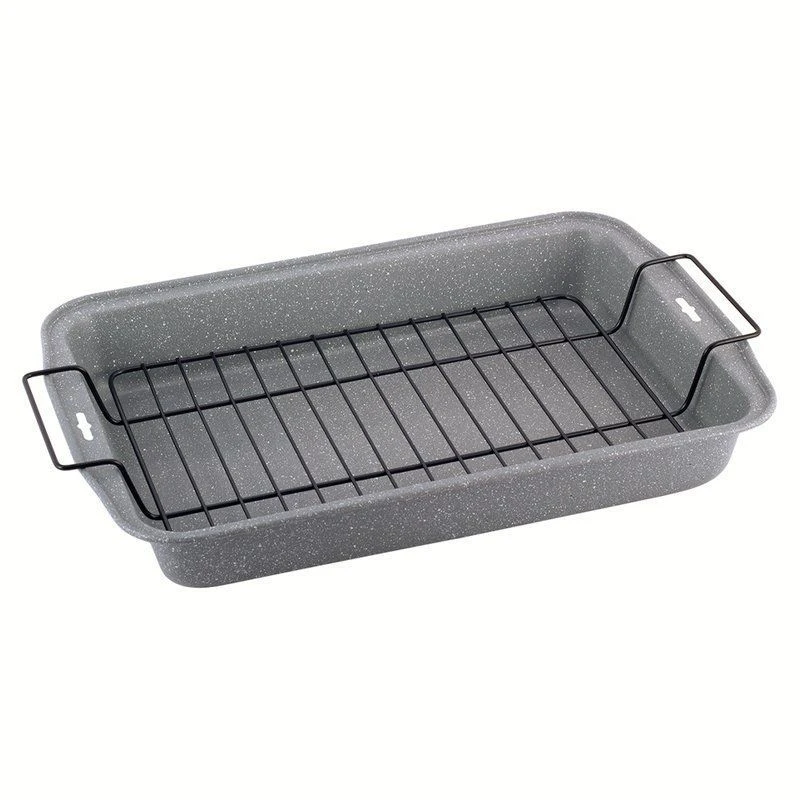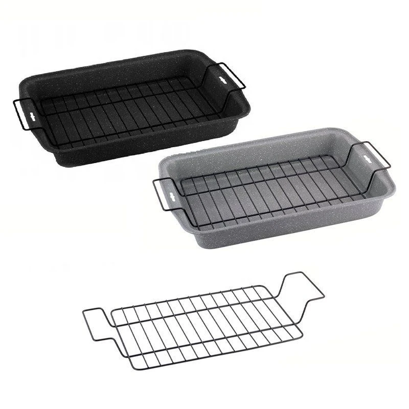 Форма для запекания Kamille - очень удобная и практичная, прекрасно подходит для использования в домашних условиях, а так же просто незаменима на профессиональной кухне. Форма выполнена из углеродистой стали с антипригарным покрытием и отличается своей прочностью и износостойкостью. В комплекте с формой есть специальная решетка-гриль, благодаря которой очень легко и просто готовить овощные, рыбные или мясные блюда. Также форму без решетки можно использовать самостоятельно для приготовления различных запеканок и пирогов. Имея у себя на кухне такую форму, Вы всегда сможете порадовать своих родных и близких вкусной и полезной едой!