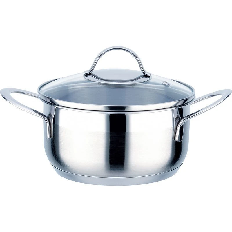 Кастрюля изготовлена из высококачественной нержавеющей стали. Термоаккумулирующее капсулированное дно способствуют равномерному распределению тепла по всей поверхности. На внутренней стороне нанесена мерная шкала для удобства наполнения.