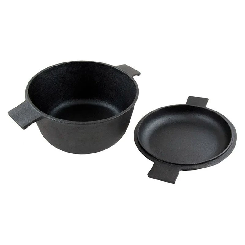 Кастрюля чугунная с термопокрытием, с крышкой-сковородой