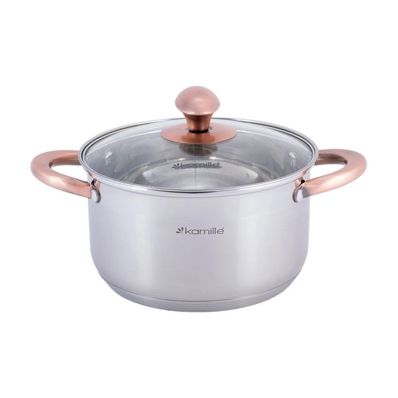 Кастрюля Kamille — изготовлена из качественных материалов с использованием современных технологий производства. Такая кастрюля имеет прекрасный внешний вид, оснащена 5-слойным индукционным дном и отличается высокой прочностью и долговечностью в использовании. Благодаря своим эргономичным свойствам, кастрюля будет служить Вам очень долго и принесет только удовольствие от использования.