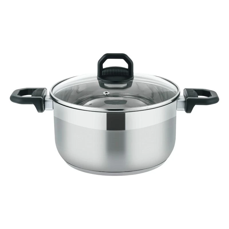 Нержавеющая кастрюля серии Бетти изготовлена из высококачественной пищевой нержавеющей стали. Идеальное соотношение толщины стенок и дна обеспечивает равномерное и быстрое нагревание, при этом приготовленная пища в такой кастрюле остывать будет медленно, так как она надолго удерживает тепло. Кастрюля оснащена двумя удобными бакелитовыми ручками , позволяющими надёжно удерживать её в руках. Посуда подходит для использования на всех типах плит, в том числе с варочными стеклокерамическими панелями и индукционными плитами. Кастрюля в комплекте со стеклянной крышкой.