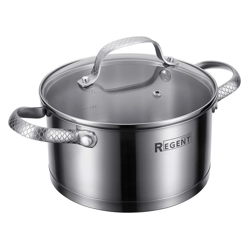 Нанесенная маркировка литража позволяет точно дозировать продукты, а крайняя отметка – выбрать оптимальный уровень воды для кипения без брызг.