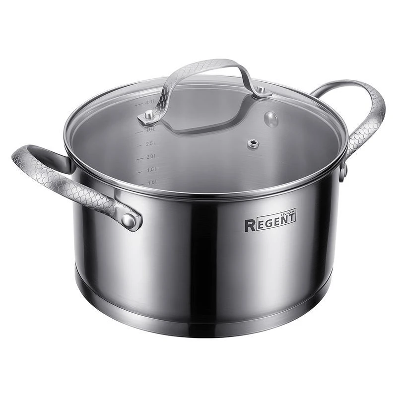 Нанесенная маркировка литража позволяет точно дозировать продукты, а крайняя отметка – выбрать оптимальный уровень воды для кипения без брызг.