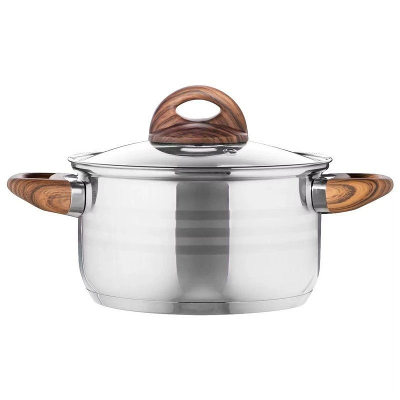 Толщина стенок: 0,4 мм. Размер: 18*10,5 см. Дно: 3-слойное капсулированное (1 мм алюминия, сталь база для индукции). Подходит для всех типов плит. Полировка: внутри - зеркальная, снаружи - смешанная. Отметки литража. Крышка из жаропрочного стекла с отверстием для выпуска пара С -тип. Ручки - бакелитовые, с покрытием под дерево. Цветная коробка+пакет.