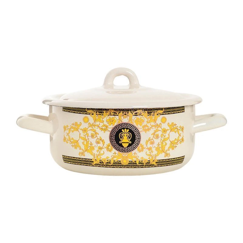 Кастрюля изготовлена из высококачественного стального проката и покрыта стеклокерамической эмалью. Внутри и снаружи трехслойное глянцевое эмалированное покрытие. Эмалевое покрытие, являясь стекольной массой, не вызывает аллергию и надежно защищает пищу от контакта с металлом. Кроме того, такое покрытие долговечно, оно устойчиво к механическому воздействию, не царапается, а стальная основа практически не подвержена механической деформации, благодаря чему срок эксплуатации увеличивается. Крышка с эмалированным покрытием оснащена удобной ручкой, . Она плотно прилегает к краю, сохраняя аромат блюд. Подходит для всех типов плит, включая индукционные. Можно мыть в посудомоечной машине.Толщина стенок 0,8 мм