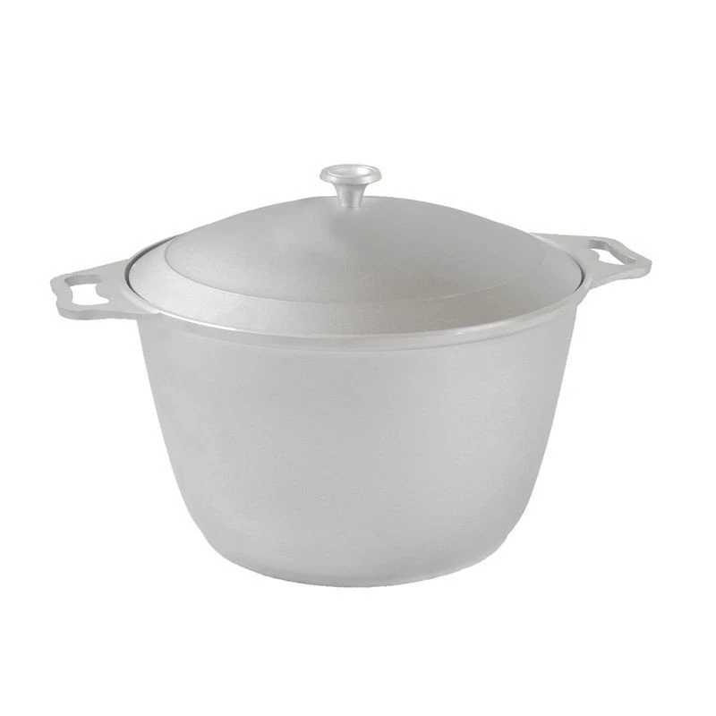 Кастрюля изготавливается из пищевых алюминиевых сплавов методом кокильного литья. Это самый качественный и экологически чистый способ изготовления литой толстостенной посуды. При приготовлении пищи в литой посуде создается эффект "русской печи"; еда в ней "томится", а не жарится, придавая пище особый вкус. Такая посуда удобна для жарки мяса, запекания индейки или курицы, тушения овощей.