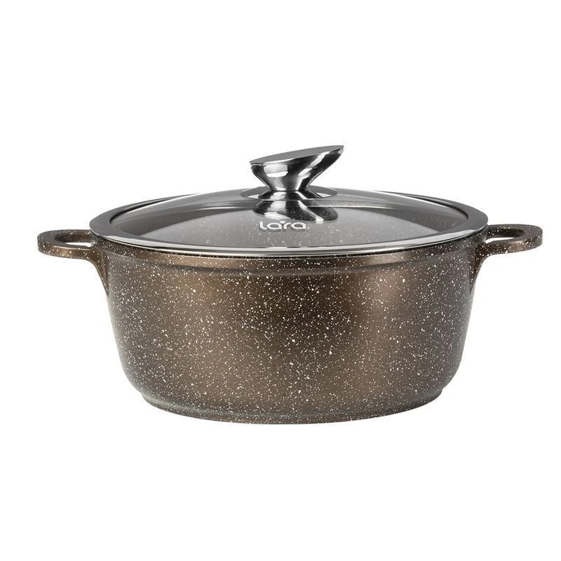 Кастрюля выполнена из литого алюминия и обладает прекрасными теплопроводными свойствами. Прочное антипригарное покрытие с минеральными частицами надежно защищает дно и стенки от повреждений. Крышка с паровыпуском изготовлена из жаропрочного стекла, имеет стальной обод и удобную ручку G-формы. Индукционное дно подходит для всех типов плит.