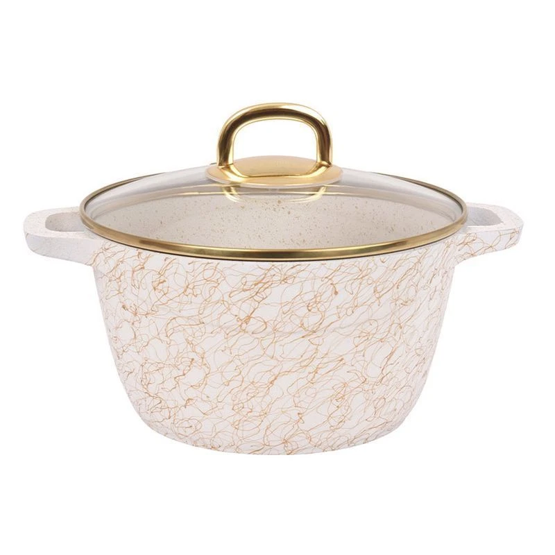 Функциональность посуды увеличивает стеклянная крышка из термостойкого стекла, благодаря которой можно наблюдать за приготовлением пищи и не снимать крышку каждый раз, теряя при этом изрядное количество тепла. Стеклянную крышку не рекомендуется использовать в духовом шкафу из-за возможного потемнения покрытия под золото.
