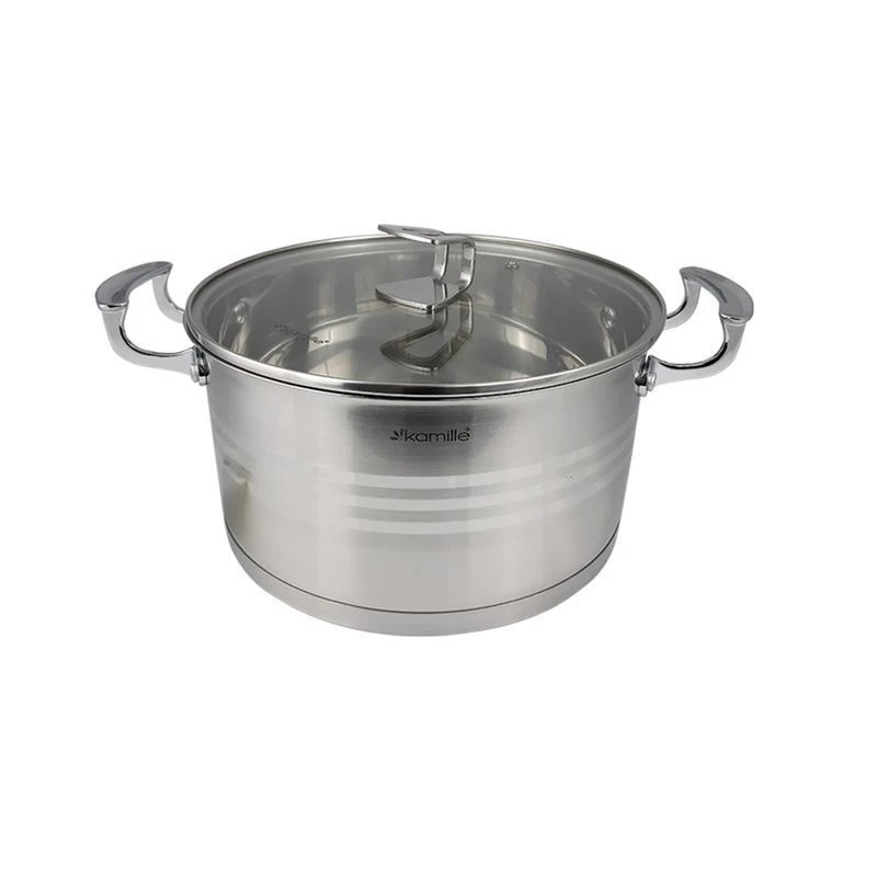 Кастрюля 22*12см, 4,4л из нержавеющей стали с крышкой. Индукионное дно. Термостойкая стеклянная крышка. Можно мыть в посудомоечной машине. Рекомендуется мыть перед первым использованием. Не используйте абразивные или едкие вещества при чистке.